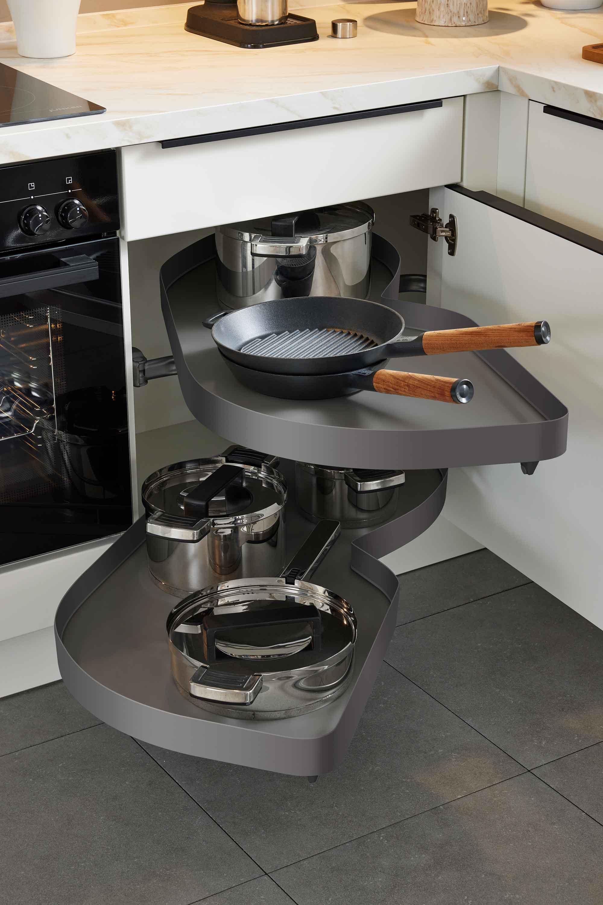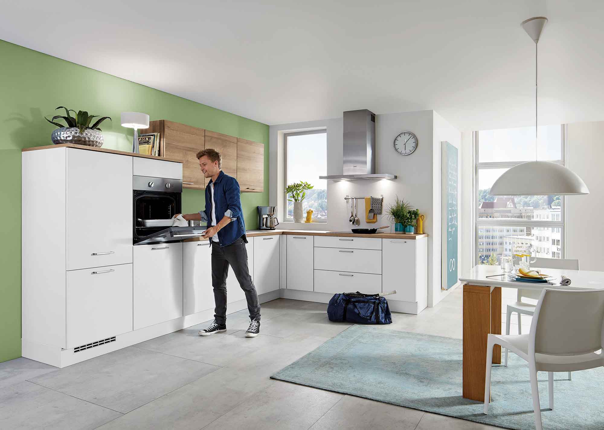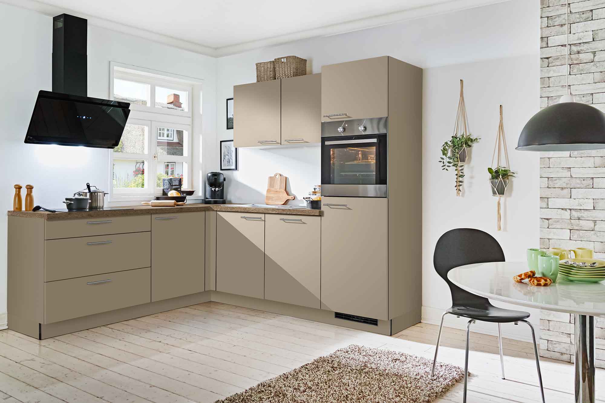 … kleinere Räume, in denen Platz effizient genutzt werden muss, als auch für größere Grundrisse, bei denen eine offene Gestaltung gewünscht ist. Dank ihrer winkelförmigen Anordnung entlang zweier Wände schaffen L-Küchen ein gut strukturiertes Arbeitsdreieck zwischen Kochfeld, Spüle und Kühlschrank. Das erleichtert die Abläufe im Alltag und sorgt für ein angenehmes, flüssiges Kocherlebnis – ob für Singles, Paare oder Familien mit Kindern.