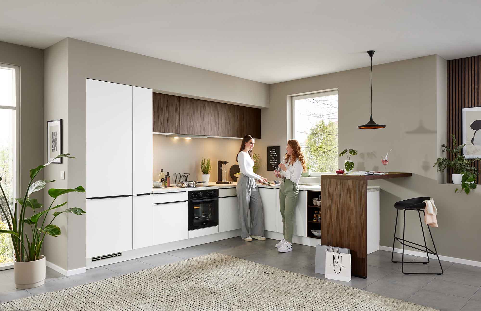 L-Küchen sind besonders flexibel und passen in kleine wie große Räume. In kleineren Küchen ermöglicht die L-Form eine platzsparende Lösung, während in größeren Küchen zusätzlicher Raum für eine Kücheninsel oder eine gemütliche Ess- oder Sitzgelegenheit bleibt.